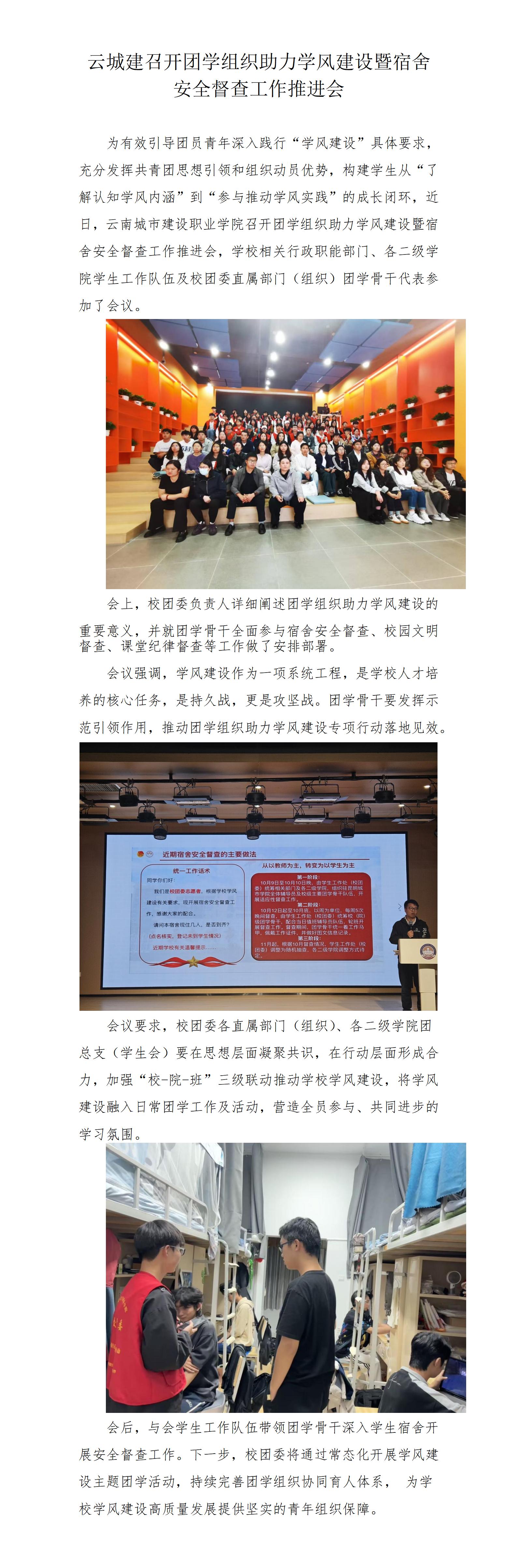 云城建召开团学组织助力学风建设暨宿舍安全督查工作推进会(2)